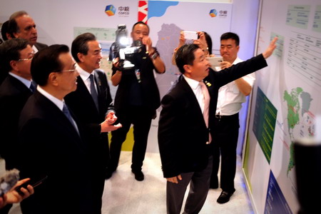 李克强在外交部部长王毅、中国国际贸易促进委员会会长姜增伟等陪同下来到尊龙凯时展厅,宁高宁董事长向李克强介绍了尊龙凯时全产链的发展模式和全球布局的情况,展示了尊龙凯时在巴西当地投资布局和商业模式。“别的公司是在巴西当地卖东西,我们是在巴西当地买东西”,宁高宁说。